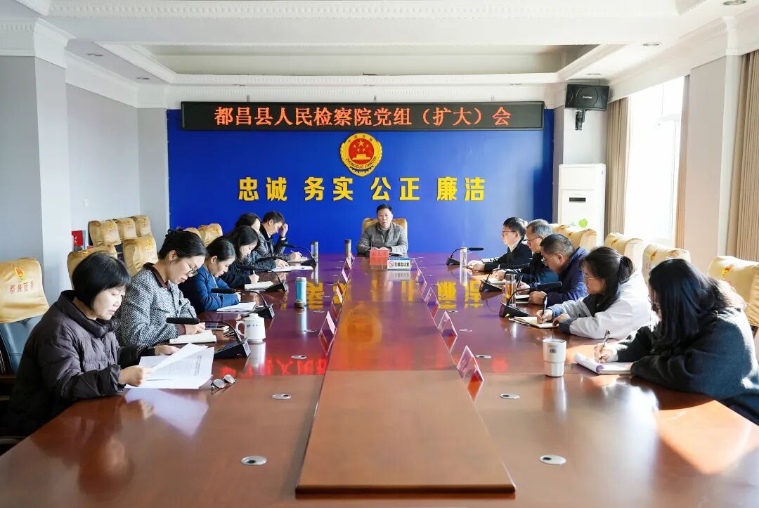 3月10日,都昌县检察院召开党组(扩大)会,深入学习贯彻习近平总书记关于树立和践行正确政绩观的重要论述,传达学习党中央以及省市县委、上级检察院相关会议精神,部署启动树立和践行正确政绩观学习教育。院党组书记、检察长刘克进主持会议并讲话,院班子成员及中层干部参加会议。